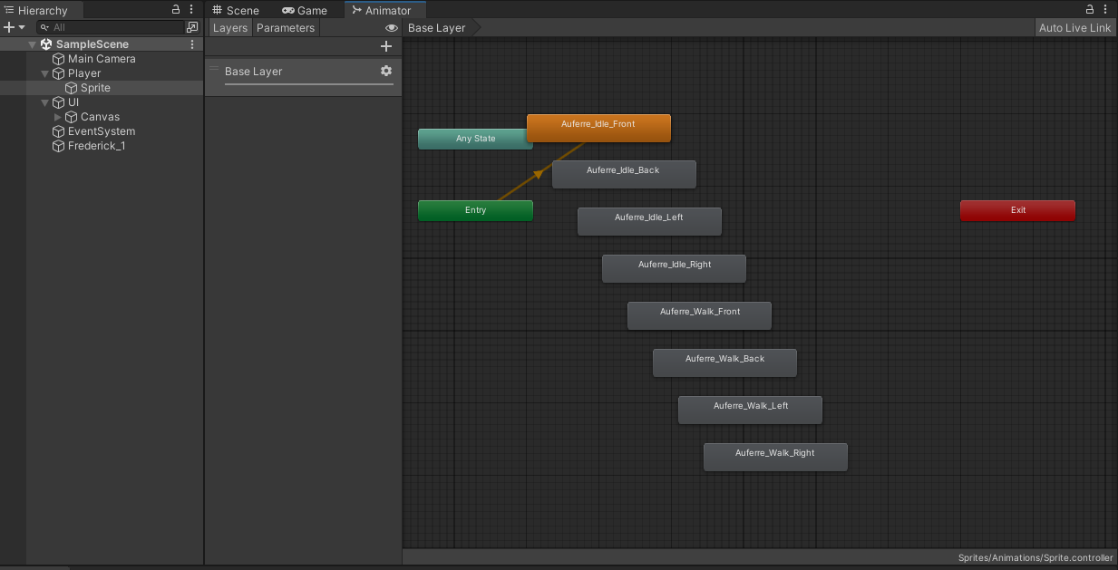 <figure><img src="https://2410317992-files.gitbook.io/~/files/v0/b/gitbook-x-prod.appspot.com/o/spaces%2FuIWMObJSZIkZU4o3Yuje%2Fuploads%2FMJSEScU1uJO9s98sj8Cs%2FPola_Auferre_all.png?alt=media&#x26;token=6743b972-f795-4e89-8329-a79c61421e61" alt=""><figcaption><p>Starting Sprite page. Note the lack of 4 directions. The side animation can be flipped in the animator.</p></figcaption></figure>