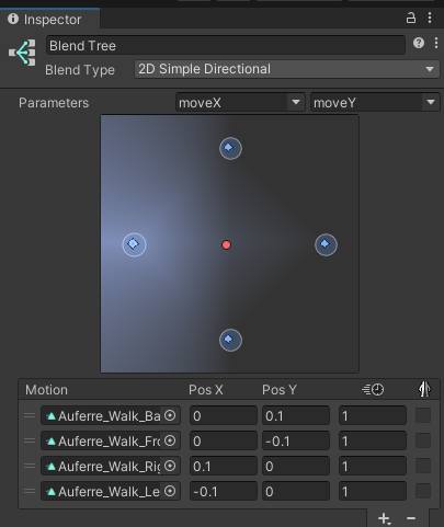 <figure><img src="https://2410317992-files.gitbook.io/~/files/v0/b/gitbook-x-prod.appspot.com/o/spaces%2FuIWMObJSZIkZU4o3Yuje%2Fuploads%2FmOKtYP1G2GauWt6mrQau%2FBlendTree_Walk1.png?alt=media&#x26;token=03226931-e624-472e-902e-7c25f1da6bb3" alt=""><figcaption></figcaption></figure>