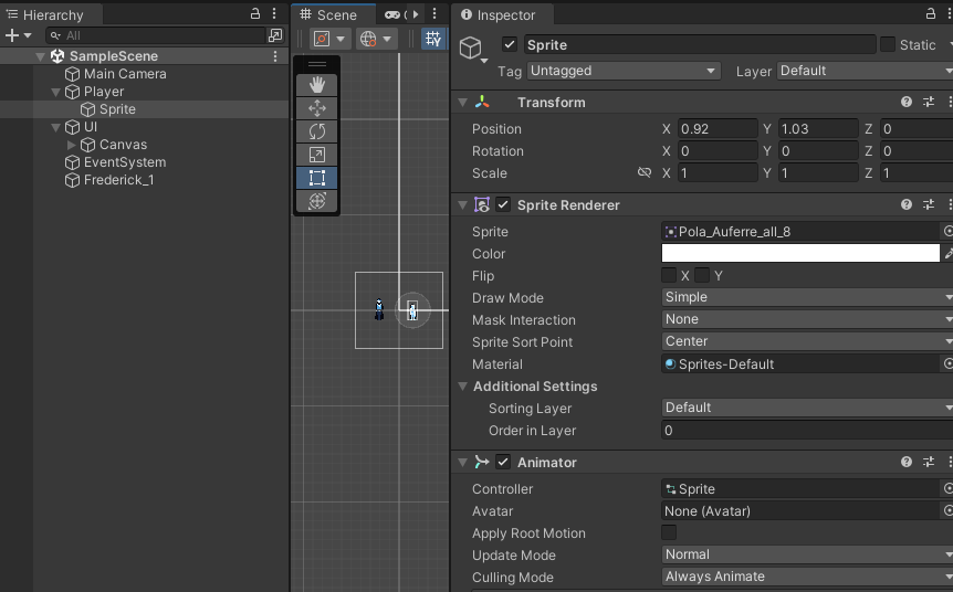 <figure><img src="https://2410317992-files.gitbook.io/~/files/v0/b/gitbook-x-prod.appspot.com/o/spaces%2FuIWMObJSZIkZU4o3Yuje%2Fuploads%2FrvxZzgNj4tRvzfudU3eW%2FSelect%20Sprite%20GameObject%20In%20Scene.png?alt=media&#x26;token=33410179-f09b-4070-a39e-6446d862c6e6" alt=""><figcaption></figcaption></figure>