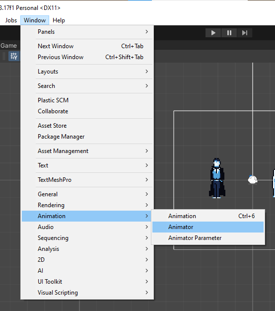 This is where we can have this one sprite have many different animations and transition seamlessly between them. Open the Animator window.